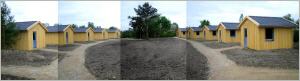 In einem Multifunktionshaus befinden sich Aufenhaltsräume, Sanitäranlagen und Küchen zur Selbstversorgung. Die Gebäude wurden in Holzrahmenbauweise innerhalb 4 Monaten erstellt.